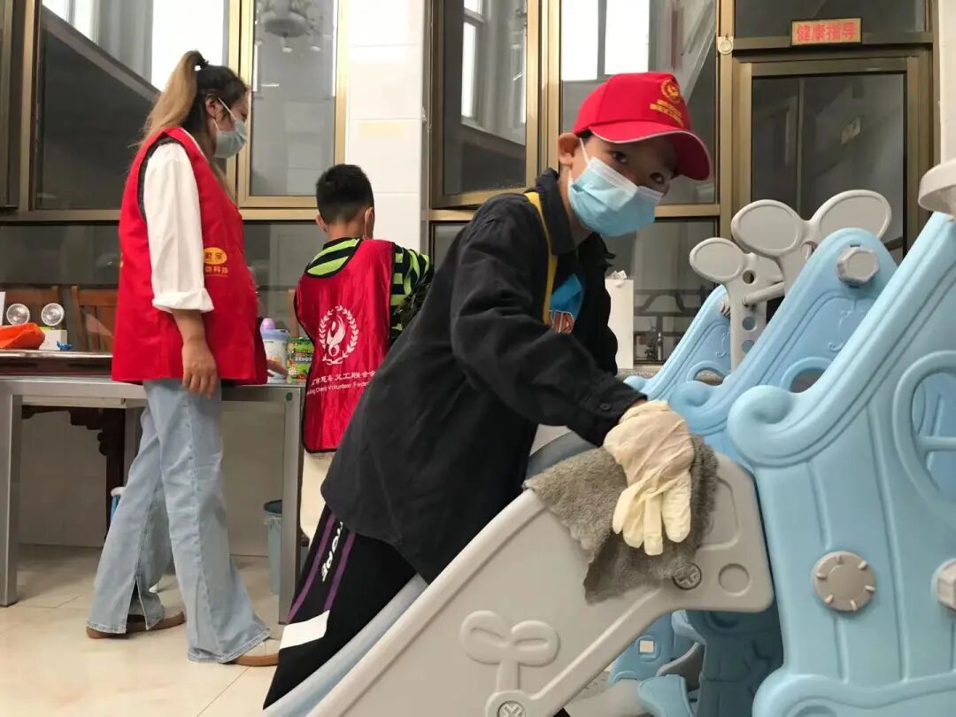 活动在《我和我的祖国》歌声里拉开序幕,大家纷纷拿起工具为老人们居住的环境打扫卫生。